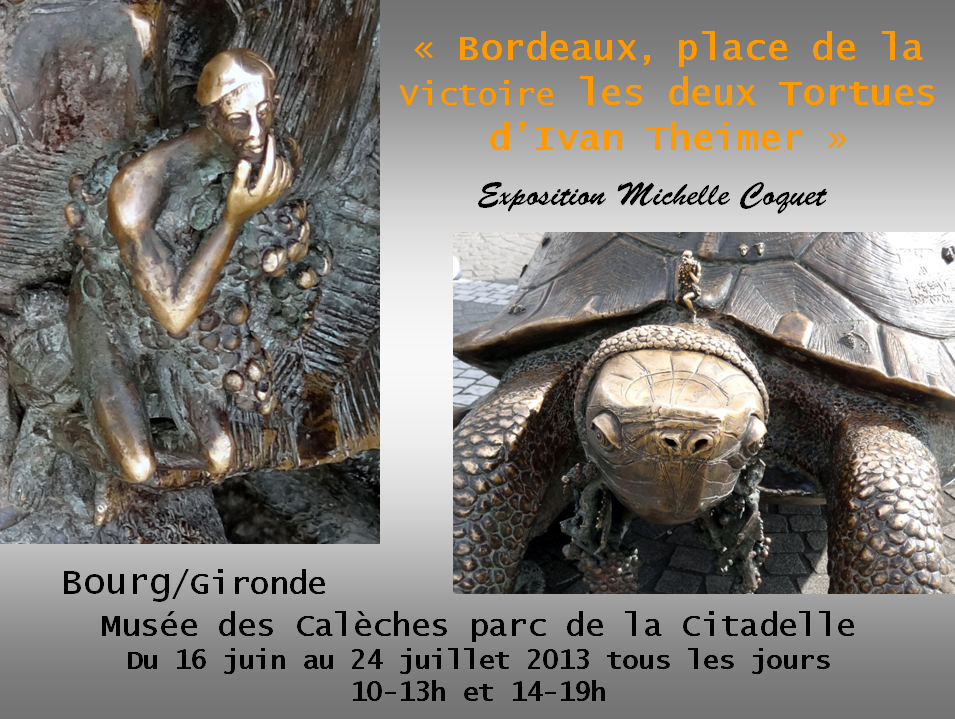 Le Musée de la Voiture à Cheval a le plaisir de vous présenter une exposition de Michelle Coquet, photographe bordelaise, qui a choisi de travailler sur un monument méconnu de Bordeaux. La colonne de marbre rose et les tortues placées à son pied. Sculptures de Ivan THEIMER, artiste d’origine Tchèque, elles ornent la Place de la Victoire de la capitale girondine.