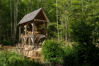 Implanté à quelques centaines de mètres du chantier, au cœur de la forêt, c’est un véritable moulin du Moyen Âge, en fonctionnement, que nous vous proposons de découvrir aujourd’hui !